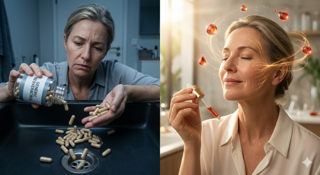 Com absorção superior à forma comum, ele age onde o corpo mais precisa — e entrega o que o resveratrol sempre prometeu, mas raramente cumpria.